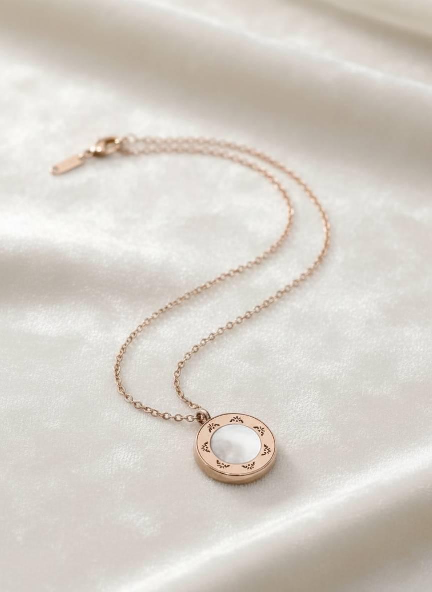 |316鈦鋼-玫瑰金白貝精油項鍊