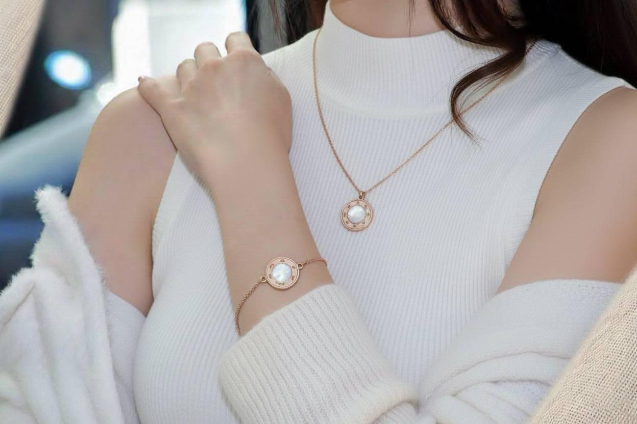 |316鈦鋼-玫瑰金白貝精油手鍊