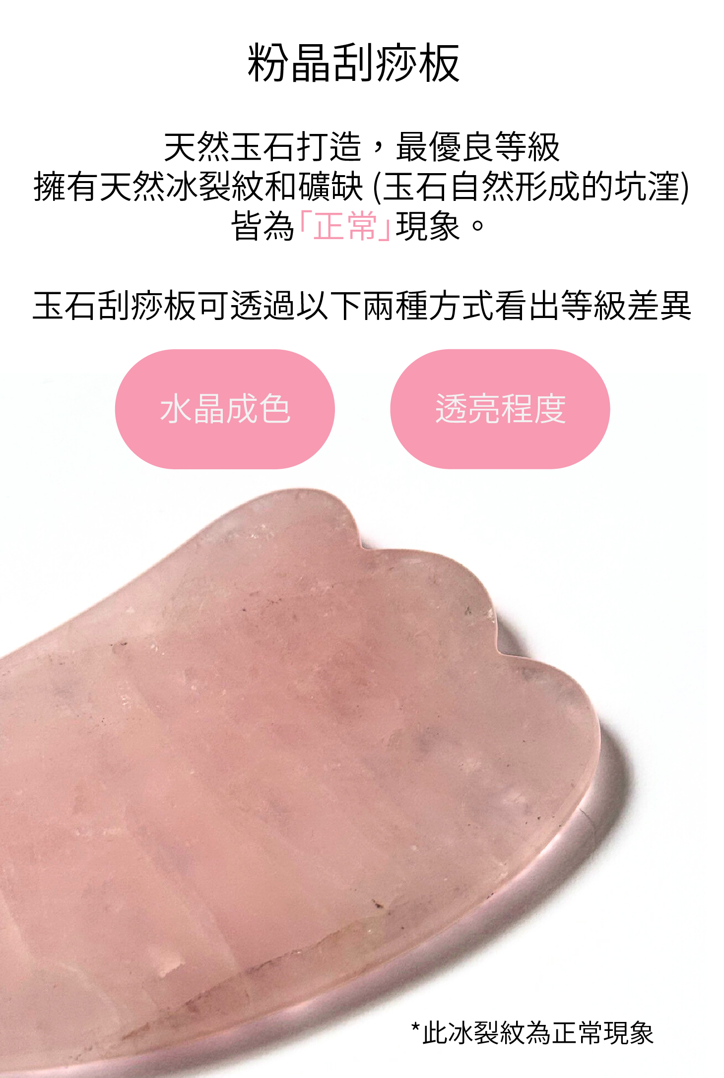 此賣場販售為「優良品質」粉晶玉石刮痧板。